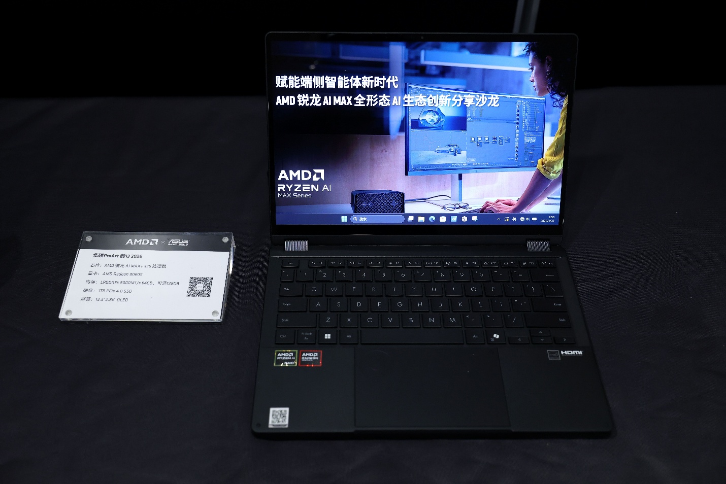 搭载 AMD 锐龙 AI Max+ 系列处理器的笔记本华硕 ProArt 创 13、华硕天选 Air 2026、惠普战 99 Ultra、ROG 幻 X、玄派玄机 16 等都已上市或者在现场展示,还有一款全新的搭载锐龙 AI Max 处理器的掌机壹号本 OneXPlayer 也可以在现场上手体验。
