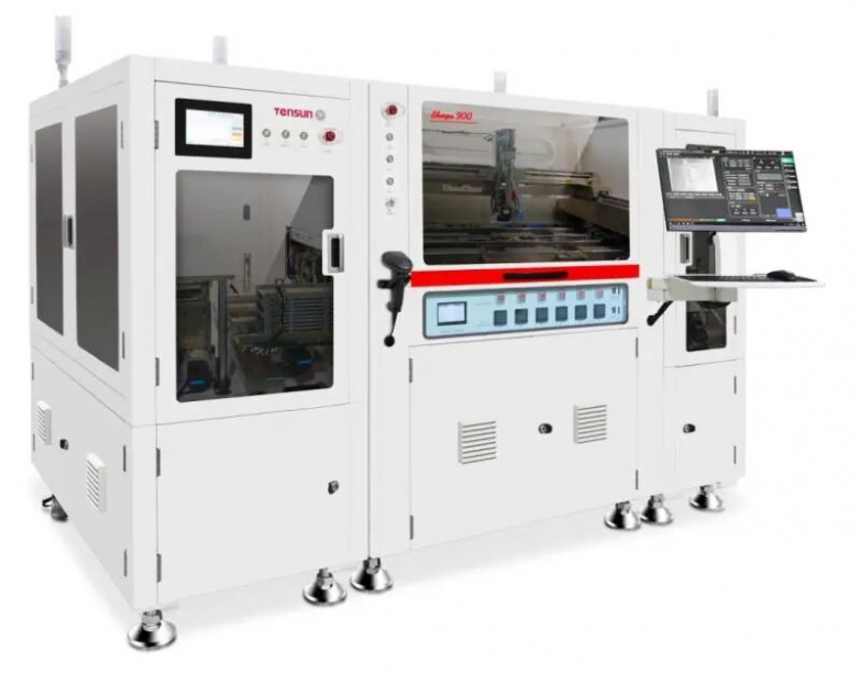 腾盛精密针对半导体底部填充工艺中填充不饱满、空洞形成、热管理等核心技术难点,结合不同封装场景需求,开发了数款专业化底部填充设备,精准适配晶圆级、面板级、板级等多类型先进封装需求,衔接前端贴装、热处理工艺与后端检测、点胶环节,为半导体封装可靠性提供有力支撑。例如针对板级底部填充的Sherpa900采用一体式铸造成型工艺,搭载龙门双驱U型直线电机,点胶快准稳。同时其支持选配倾斜旋转机构,实现芯片四边的倾斜点胶,对于提升Fillet,减小KOZ效果显著,适用于FCBGA、FCCSP、SiP等封装中的倒装技术。