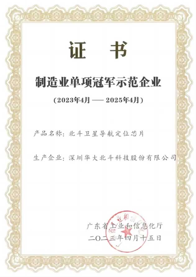 此次荣获广东省“2022年省级制造业单项冠军示范企业”,是华大北斗多年来专注北斗GNSS卫星导航定位芯片领域不断创新和发展的结果,也是对公司未来发展的鼓励和鞭策。未来,华大北斗将持续致力于推进自立自强技术创新、推进与各行各业深度融合应用为主要抓手,用“芯”持续推动北斗规模化应用,与产业链企业共同描绘好北斗产业发展蓝图。